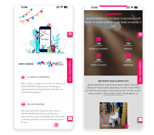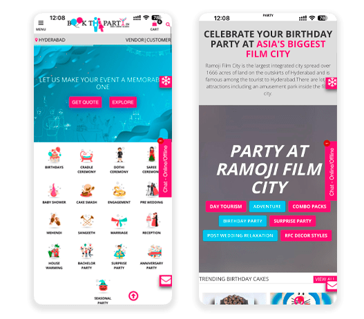 Book the Party is a comprehensive event management platform offering a diverse array of services across various categories within a unified framework. Our app is meticulously designed to provide users with a centralized hub where they can effortlessly browse through offerings, place orders, and enable vendors to efficiently manage requests.